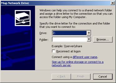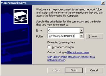 selecting Finish, Check the ‘Reconnect at logon’ box.
