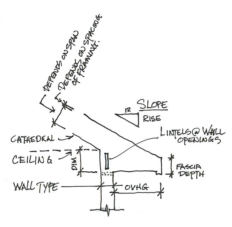 Roof Details for Final Project You are required to submit a roof eave detail section in your final project submission. This detail must coordinate with your design for the residence in Architectural Studio 2. Use the generic detail shown below to begin researching eave detail. Determine the roof framing system. |